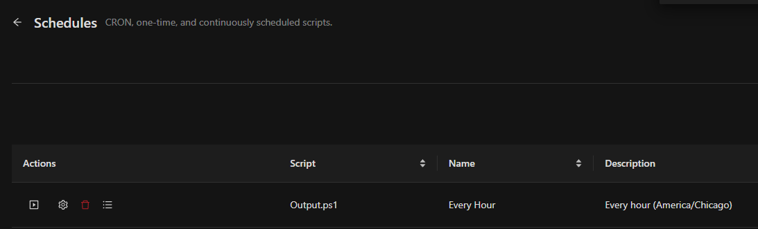 You can schedule jobs to [run continuously](https://docs.powershelluniversal.com/schedules#continuous), [at certain times ](https://docs.powershelluniversal.com/schedules#cron)or even [when events happen](https://docs.powershelluniversal.com/automation/triggers) within the PowerShell Universal platform.