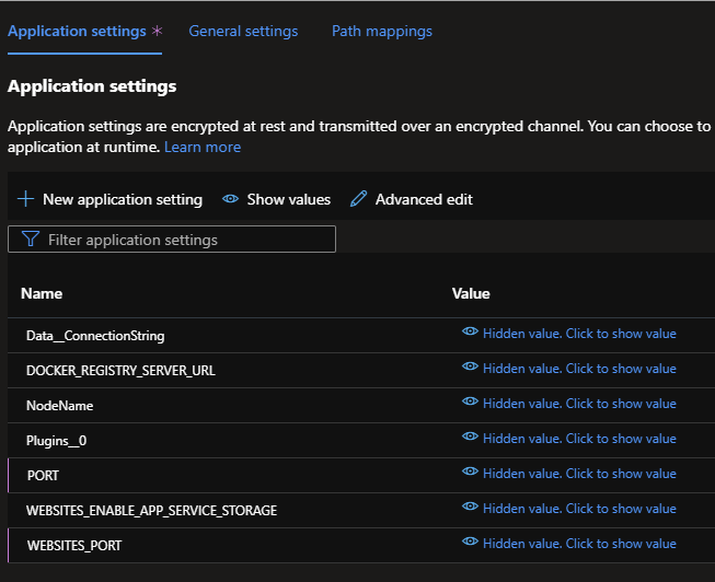 Create a `Plugins__0` setting with the value `SQL`. Next, set the `Data__ConnectionString` value to your SQL server database.