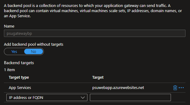 First, configure a backend pool that targets one or more Azure Web Apps running PowerShell Universal.