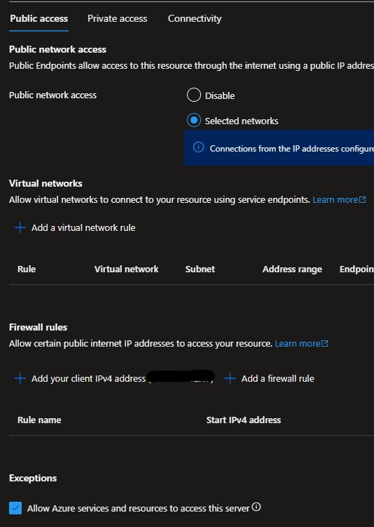 Ensure that you have allowed Azure services to access the database.